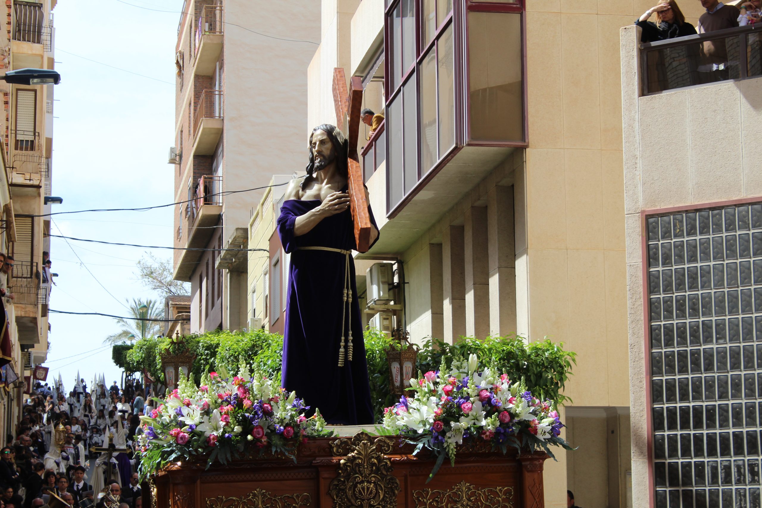 Como la gran mayoría de las cofradías crevillentinas, ante la falta de “agarraós”, el paso tuvo que ser portado por un sistema de ruedas hasta que en el año 1992, el empuje de los jóvenes cofrades, motivaron que Jesús Nazareno volviera a ser portado a hombros de “agarraós”.