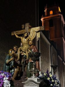 En la actualidad, únicamente participa en la procesión de la Muerte de Cristo Viernes Santo por la noche y el paso siempre ha sido portado a hombros de sus “agarraós”, primero por 18 y tras varias reformas realizadas, se ha pasado a un total de 48 “agarraós” quienes portan sobre sus hombros el grupo escultórico.