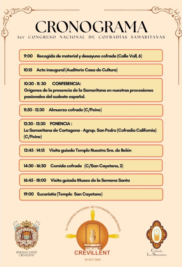 Tendrá lugar el próximo sábado 25 de octubre en una sola jornada que estará repleta de vivencias y actividades. Un encuentro único de fe, devoción y hermandad que reunirá a cofradías samaritanas de toda España. Un día para reflexionar, compartir experiencias, fortalecer lazos… y vivir juntos la espiritualidad que nos une.